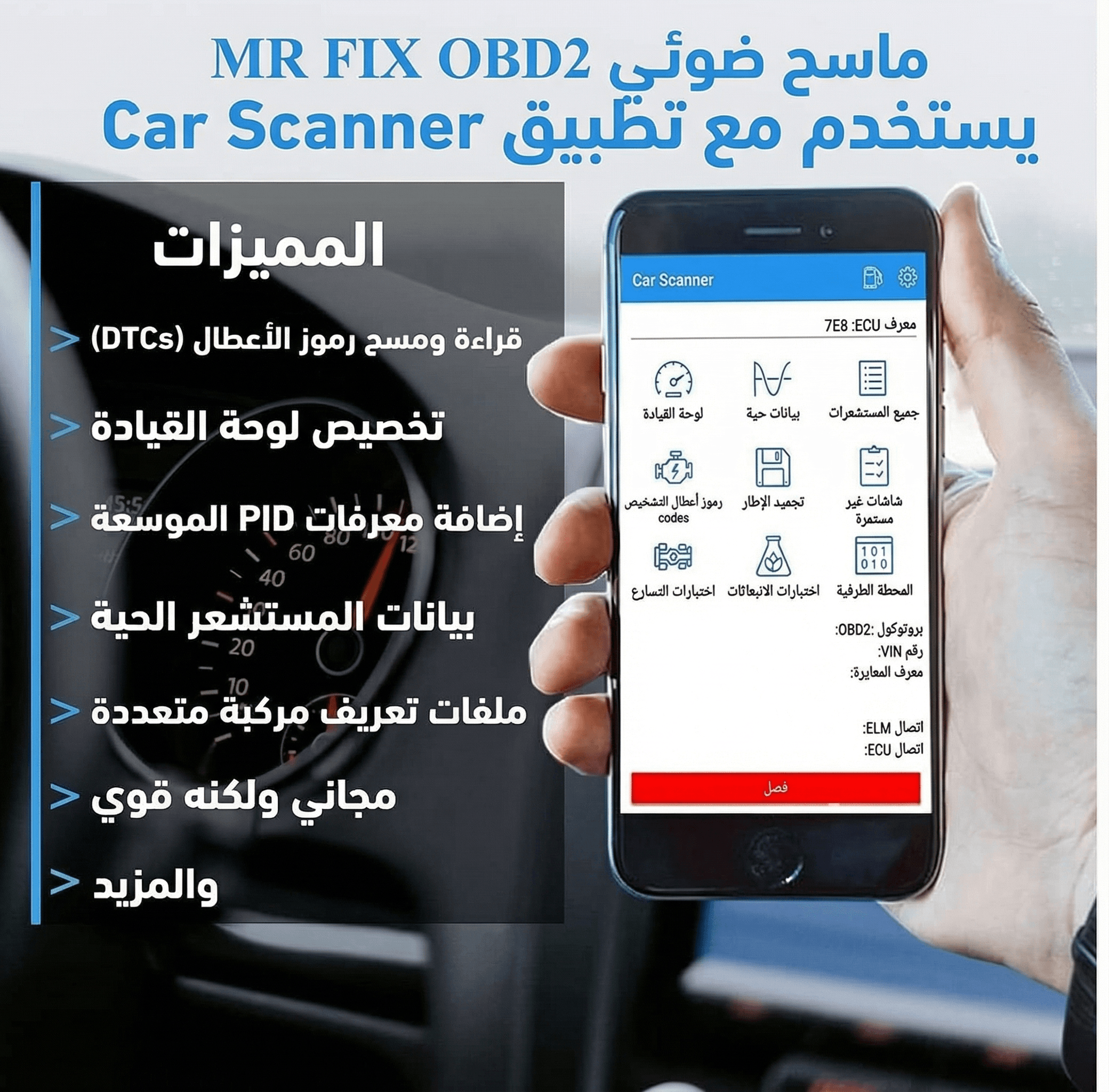 جهاز فحص أعطال السيارات هو أداة تشخيص ذكية تعتمد على معيار OBD2 وتعمل عبر اتصال Bluetooth مع الأجهزة الذكية. بمجرد توصيل الجهاز بمنفذ التشخيص في السيارة وتشغيل التطبيق المناسب على هاتفك، ستحصل على قراءة مفصلة لأخطاء السيارة، مما يمكّنك من اتخاذ قرار صائب حول الإصلاح دون الاعتماد الكلي على الميكانيكي. هذه الأداة مثالية للسيارات الخاصة، سيارات العائلة وحتى سيارات العمل، وتمنحك سيطرة كاملة على صحة سيارتك من خلال تطبيقات سهلة الاستخدام.