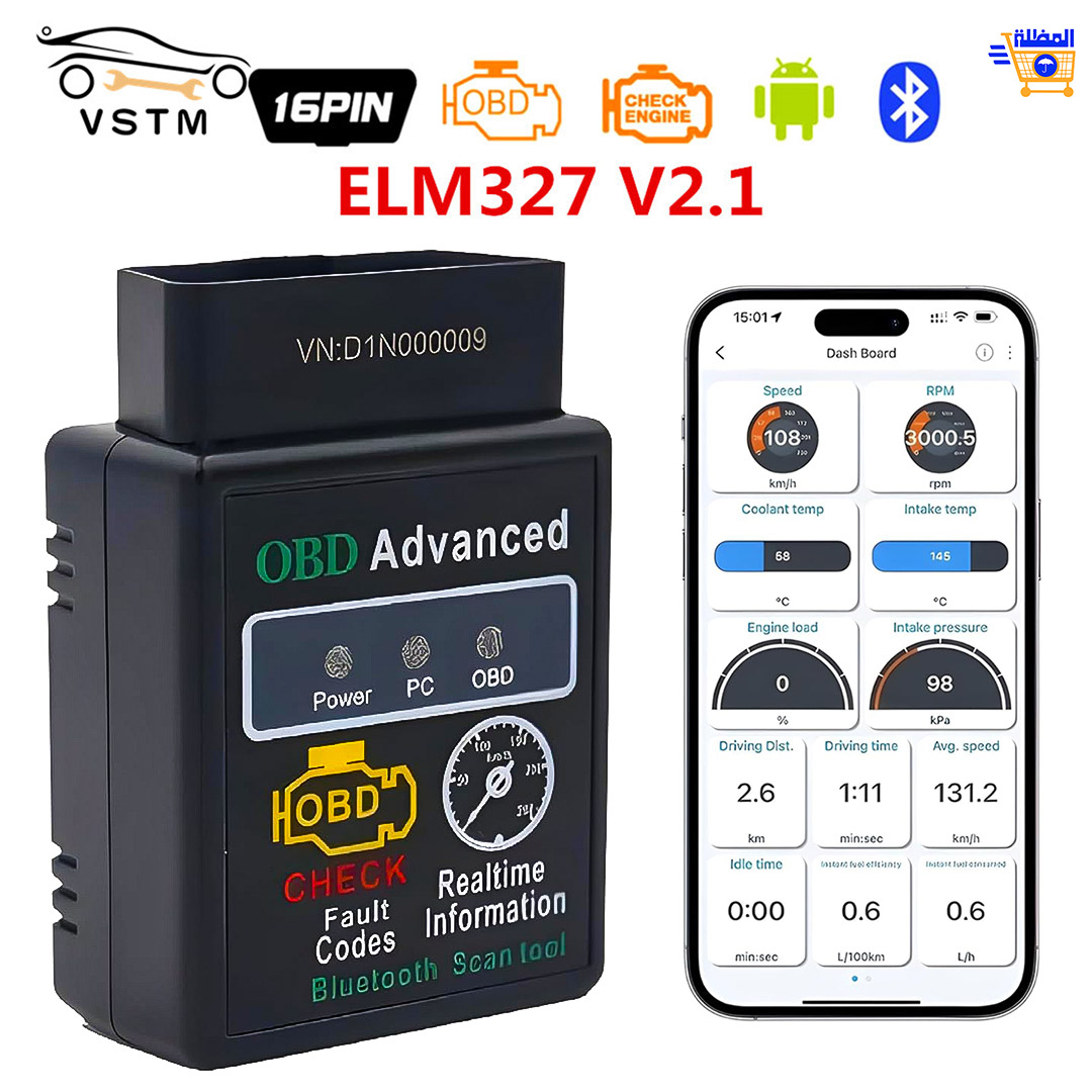 جهاز فحص أعطال السيارات بتقنية OBD2 و Bluetooth .