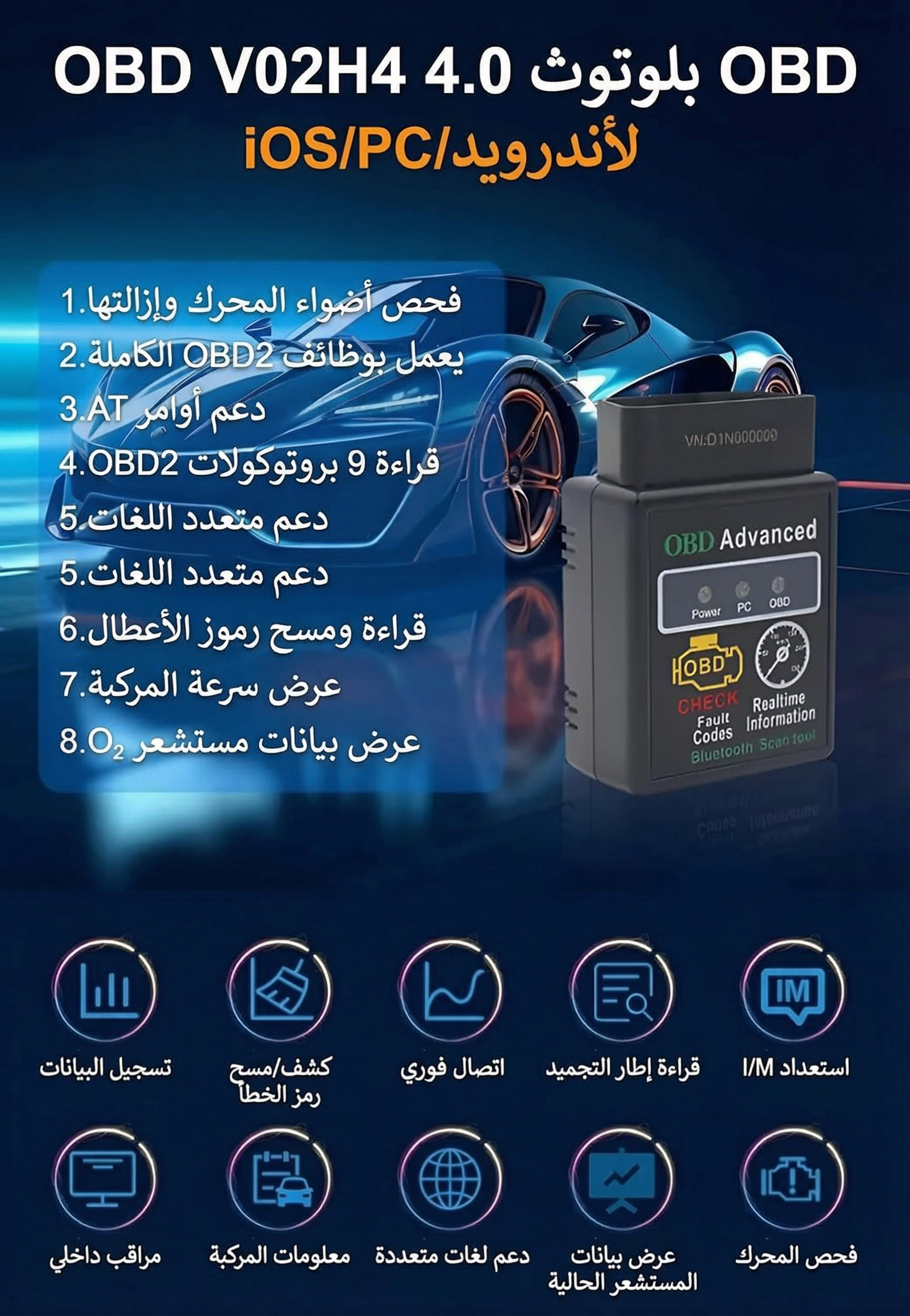 المواصفات التقنية : Obd2 Scanner Bluetooth Advanced