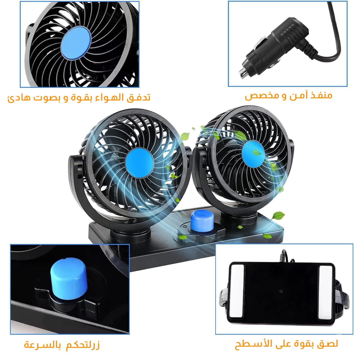 تعتبر مروحة السيارة مزدوجة الرأس الأفضل حتي الآن جودة في التصنيع و سعر مناسب و حجم إستراتجي لتبريد و نشر الهواء بشكل مثالي بدون أخذ مساحة كبيرة داخل السيارة .
